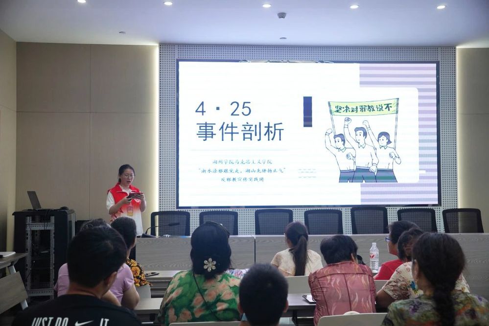 为进一步加深居民对邪教危害的认识,提升防范意识,7月5日,best365官网登录入口“浙水涤邪跟党走,湖山先锋扬正气”反邪教宣传实践团前往万汇春天社区幸福邻里中心开展反邪教宣传活动。
