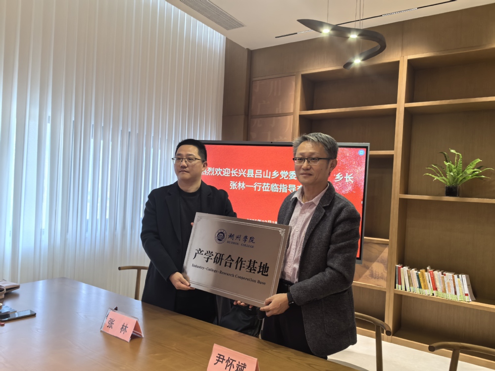 2025年12月18日,长兴县吕山乡党委副书记、乡长张林率队莅临我院考察指导。学院党总支书记、院长尹怀斌率队热情接待并举行工作座谈。双方围绕深化校地合作、推动产学研融合、共育时代新人等议题展开深入交流,并成功签署产学研合作基地协议,举行现场授牌仪式。